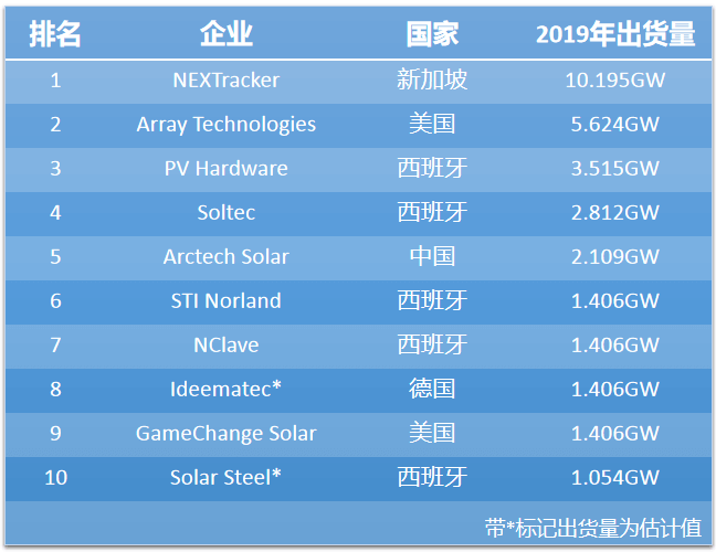 据伍德麦肯兹分析认为,2019年全球光伏追踪系统市场实现增长20%,但排名前十的企业业务量却占据了全球市场份额总量的88%,市场集中度下降。